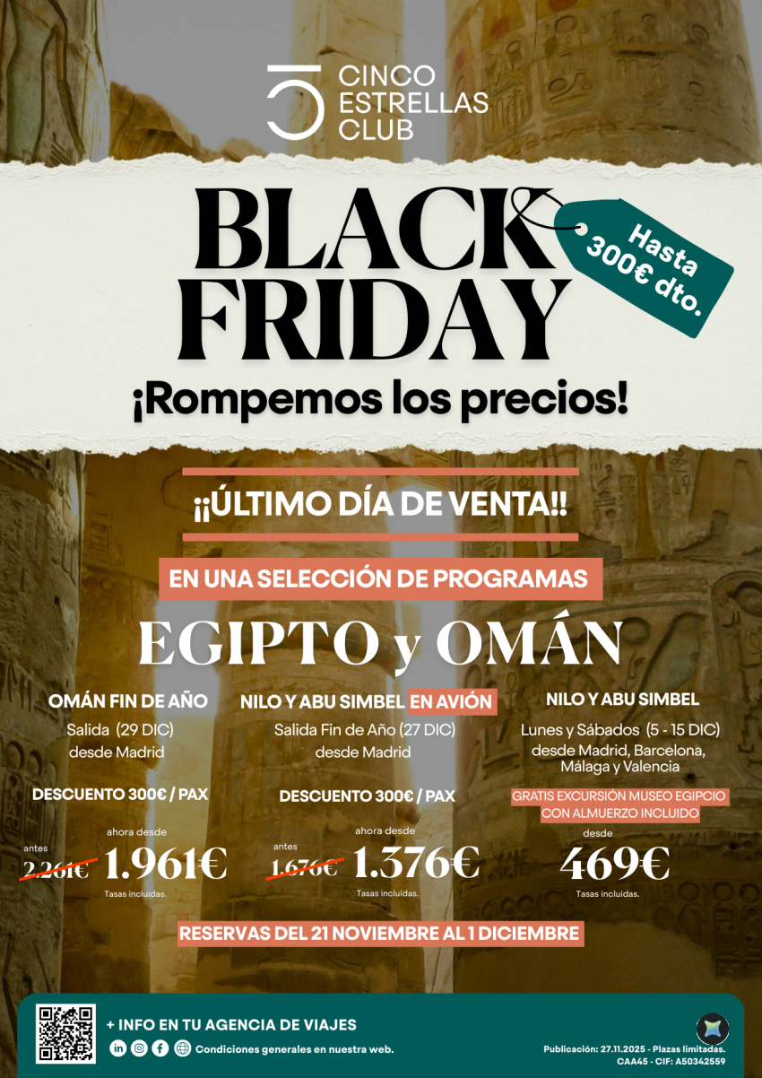 Último día de BLACK FRIDAY!!! Rompemos los precios!! Egipto y Omán hasta 300 € dto salidas en Diciembre