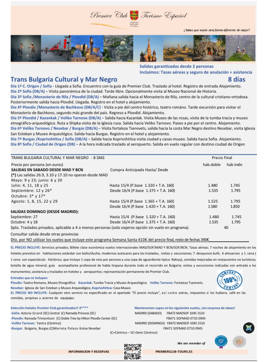Trans Bulgaria Cultural y Mar Negro - 8 días - Cupos confirmación inmediata - Precio final desde 1.480€