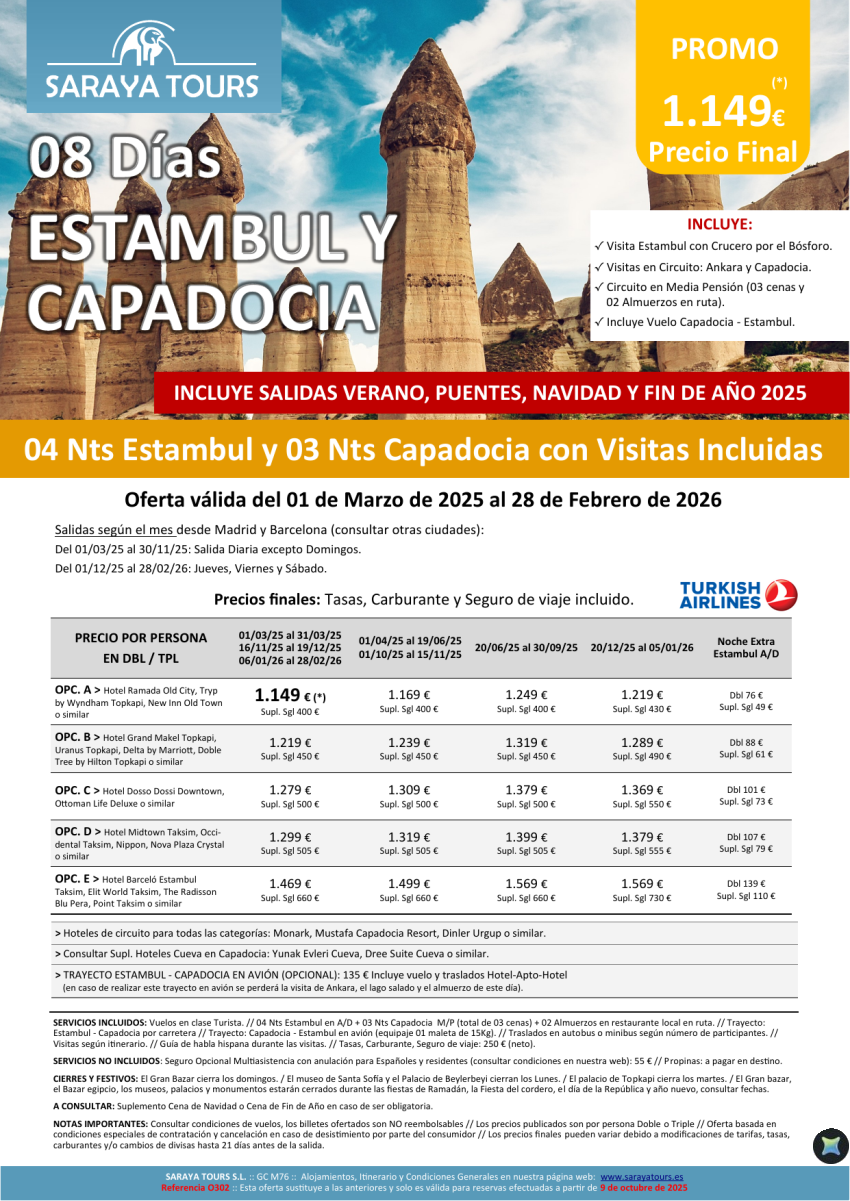Estambul y Capadocia 8 días: Circuito con Visitas Incluidas salidas hasta Febrero 2027